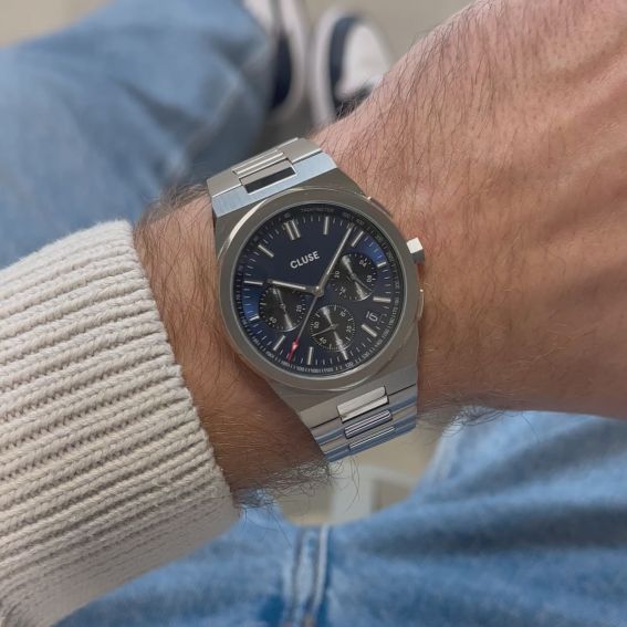 Cluse vigoureux acier argenté et fond BLEU