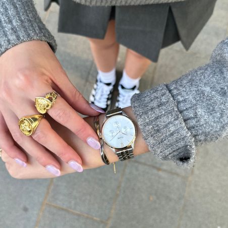 - Cadran sophistiqué : Couleur or/argent, agrémenté de trois sous-cadrans multifonctions (affichage du jour inclus) pour allier style et praticité.