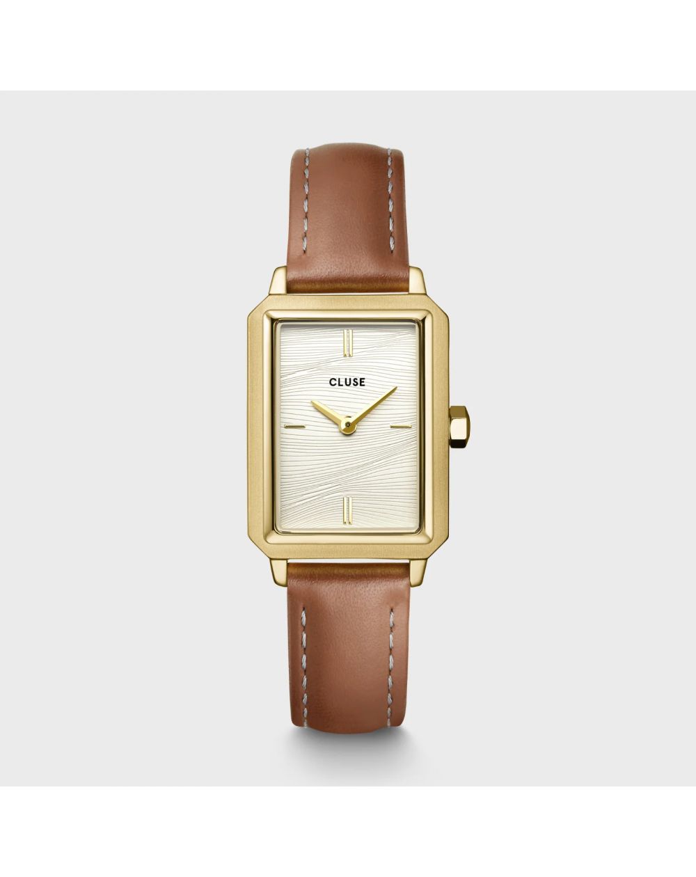 Sublimez votre style avec la montre Fluette pour femmes, le mélange parfait entre sophistication et raffinement. Elle est dotée d'un boîtier doré rectangulaire poli de 30,6 mm, d'un bracelet en cuir couleur brun noisette de 14 mm et d'un cadran blanc texturé rappelant le sable sur la plage l'été. Personnalisez facilement le look de votre montre avec n'importe quel bracelet de 14 mm. Vous pouvez ajuster vous-même la taille du bracelet.