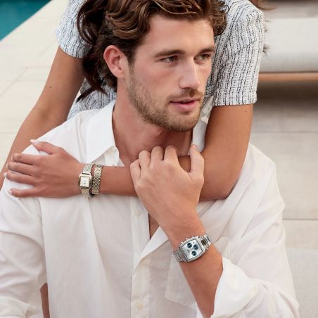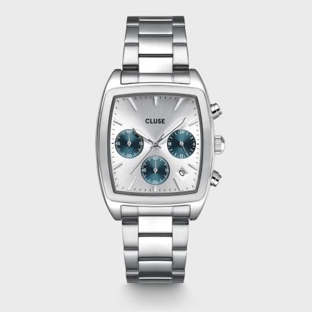 La montre Quartaut Chrono pour hommes allie parfaitement puissance et élégance. Elle est dotée d'un boîtier argenté type tonneau, d'un bracelet en acier inoxydable à 3 maillons et d'un cadran bleu avec trois sous-cadrans. Une montre façonnée avec précision, alliant confort et style. Pour ajuster le bracelet de montre, nous vous recommandons de vous rendre chez votre bijoutier habituel.