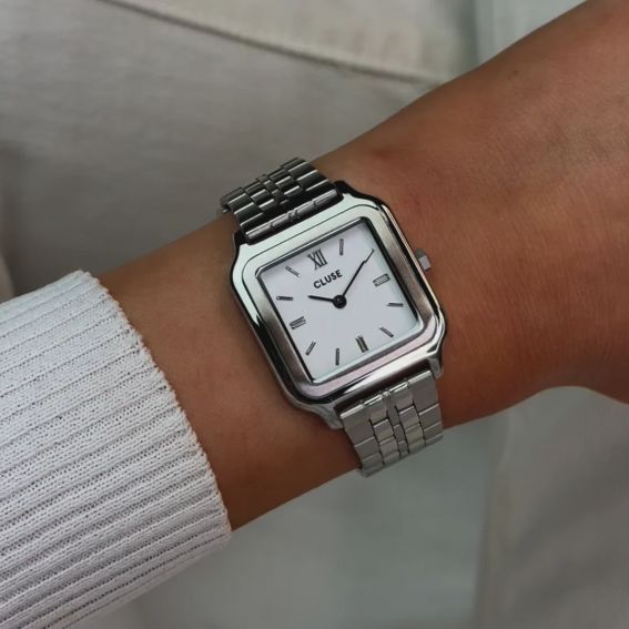 Voici LA pièce manquante à votre collection de montre : la Gracieuse Petite pour femmes. Elle est dotée d'un boîtier carré argenté de 28 mm, d'un cadran blanc et d'un bracelet à 5 maillons en acier inoxydable de 16 mm assorti. Cette montre argentée ne manquera pas de faire parler d'elle et ajoutera une touche vintage à tous vos looks. Personnalisez facilement le look de votre montre avec n'importe quel bracelet de 16 mm. Vous pouvez ajuster vous-même la taille du bracelet.