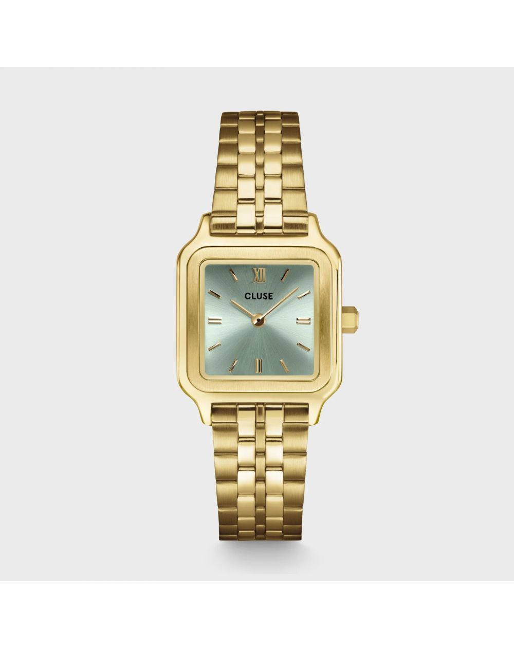 Laissez-vous séduire par l'élégance subtile de la montre Gracieuse Petite signée CLUSE. Avec son boîtier carré doré et son bracelet à cinq maillons en vert sauge, cette montre pour femme allie modernité et délicatesse. Son cadran lilas givré, rehaussé d’une couronne assortie, apporte une note poétique et originale à votre poignet.