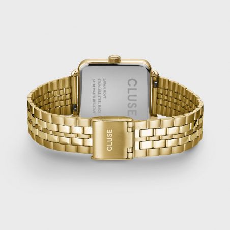 Ce coffret CLUSE réunit une montre carrée dorée avec un cadran noir élégant et un bracelet en acier doré, accompagnée d’un bracelet chaîne doré assorti. Présenté dans un coffret blanc et or, c’est un cadeau chic et intemporel.