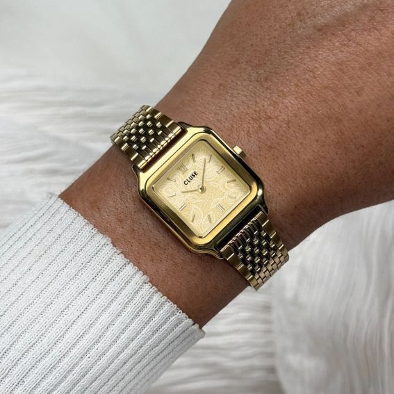Son bracelet en acier inoxydable doré de 14 mm offre un bel équilibre entre finesse et caractère. Facile à ajuster soi-même, il garantit un confort optimal au quotidien. Grâce à son système interchangeable, la montre peut être personnalisée avec n’importe quel bracelet 14 mm de CLUSE, pour s’adapter à toutes vos envies et à chaque tenue.