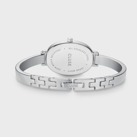 Son bracelet jonc en acier inoxydable argenté, fin et raffiné (6 mm de largeur), apporte une touche bijou subtile qui épouse élégamment le poignet. Discrète mais sophistiquée, cette montre s’accorde aussi bien avec une tenue casual qu’avec un look plus habillé.