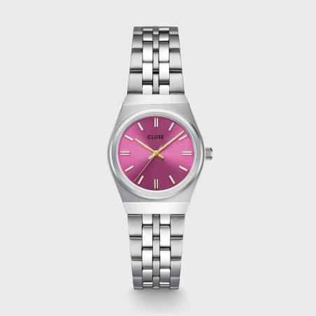 Montre Femme Retro 70’s Mini – Acier Argenté & Cadran Fuchsia Soleillé