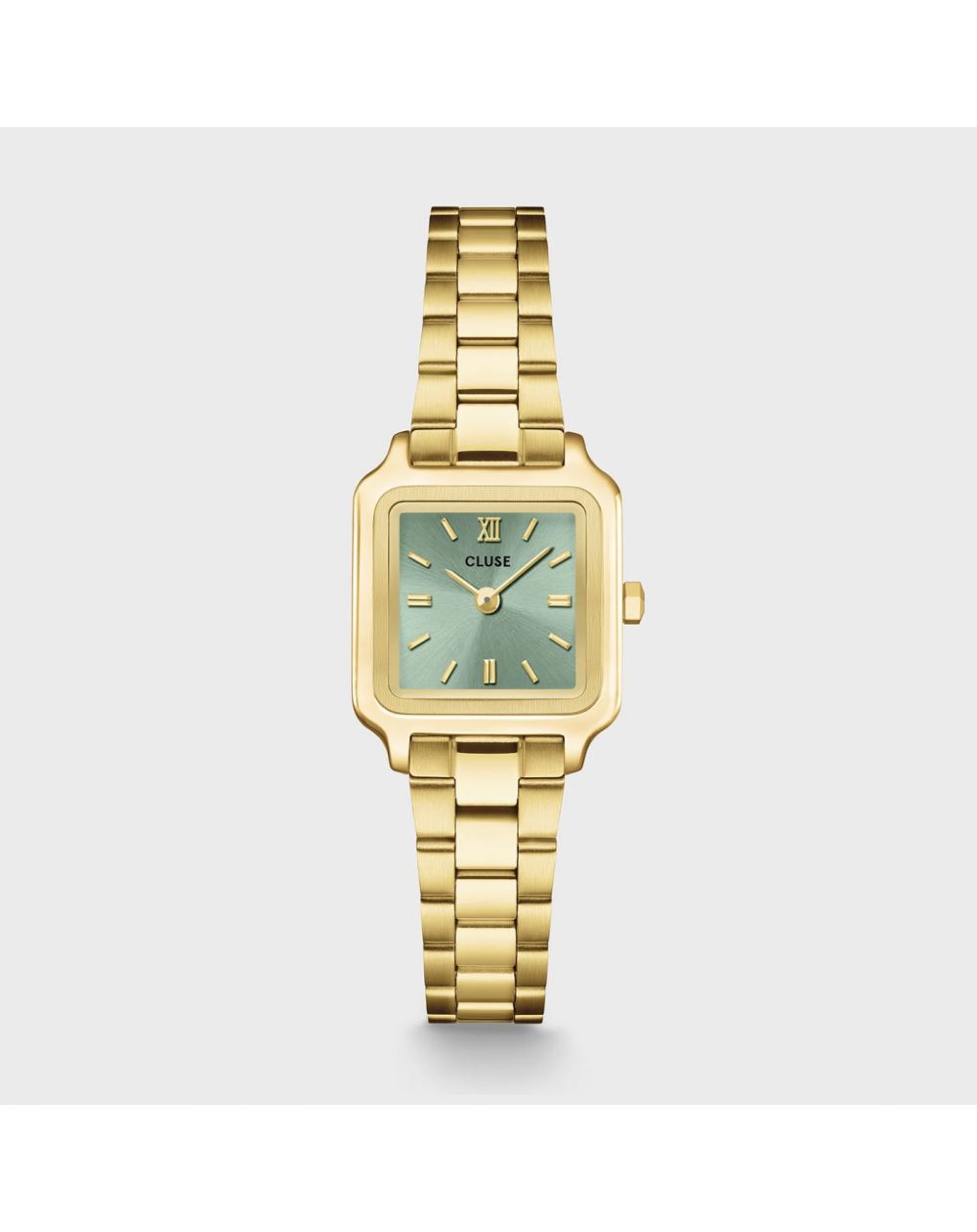 Subtile et raffinée, la montre Gracieuse Mini séduit par son esprit bijou et son élégance naturelle. Son boîtier carré de 21 mm en acier inoxydable doré met en valeur un cadran vert sauge à effet soleillé (sunray), aux reflets délicats et apaisants.