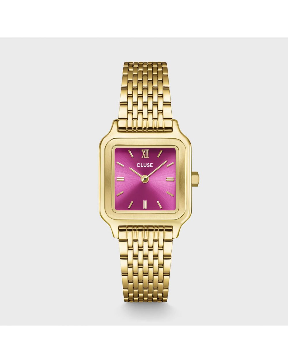 Affirmez votre style avec la montre Cluse Gracieuse Petite et son éclatant cadran rose fuchsia effet sunray. Son boîtier carré de 24 mm en acier inoxydable doré sublime le poignet avec une touche moderne et féminine, parfaite pour apporter du caractère à toutes vos tenues.