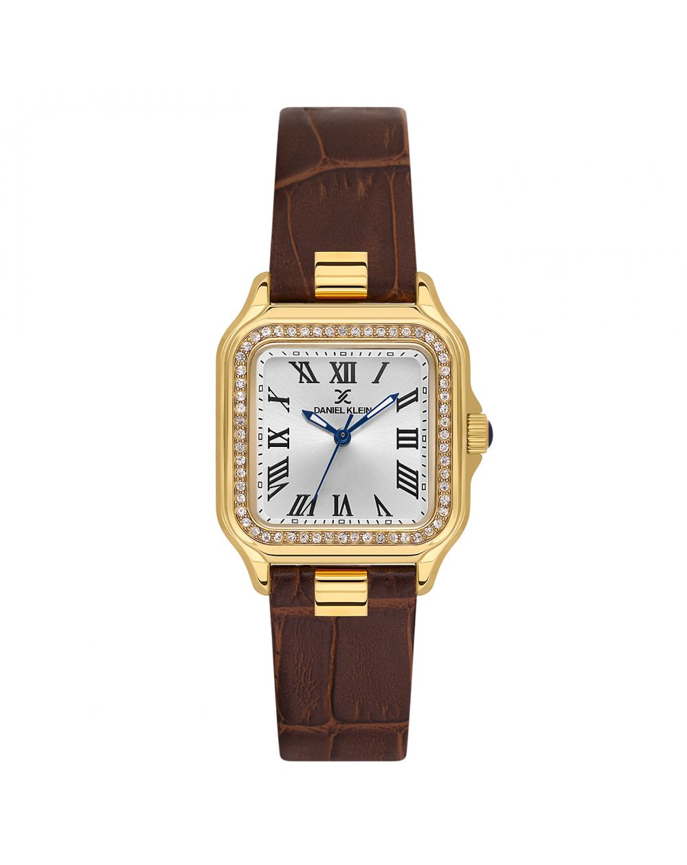 La Daniel Klein DK.1.14039-2 sublime le poignet avec un style raffiné inspiré des montres classiques. Son boîtier doré de 28 mm, orné d’un cercle étincelant de cristaux, apporte une touche précieuse tout en restant délicate. Le cadran argenté est décoré d’index romains noirs et d’aiguilles bleues élégantes, pour une lisibilité parfaite et un charme intemporel.