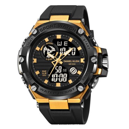 La Daniel Klein DK.2119-1 est une montre masculine taillée pour l’action. Avec son design robuste noir et doré, elle impose un style sportif premium dès le premier regard. Son large boîtier, son cadran multifonction et ses détails métalliques affirmés en font le choix idéal pour les hommes qui recherchent une montre à la fois pratique et spectaculaire.