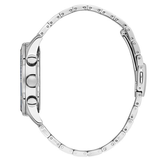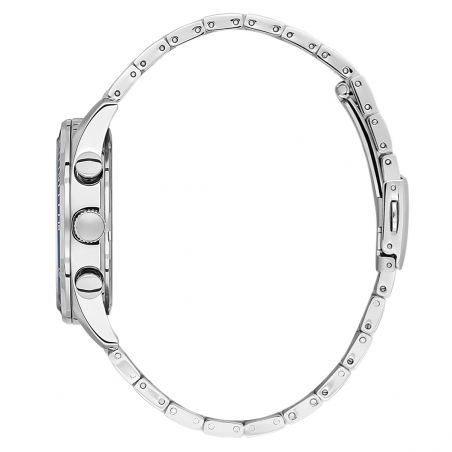 Son boîtier généreux de 44 mm offre une forte présence au poignet, idéale pour les amateurs de montres masculines affirmées. Le bracelet en acier inoxydable assure robustesse, confort et durabilité, tout en apportant une finition élégante et professionnelle. Les fonctions chronographe, le double affichage horaire (dual time) ainsi que le guichet date renforcent le caractère fonctionnel de ce modèle.