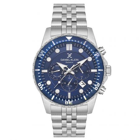 Montre homme chronographe acier argent cadran bleu – Daniel Klein Exclusive DK.1.14233-2