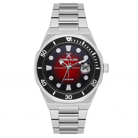 Montre homme acier argent cadran rouge dégradé – Daniel Klein 42 mm DK.1.13989-5