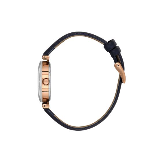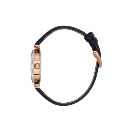 Le bracelet en cuir apporte une touche authentique et assure un excellent confort au porté, tandis que la finition or rose du boîtier illumine subtilement le poignet. Ce modèle au design épuré s’adapte aussi bien à une tenue casual qu’à un look plus habillé.