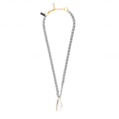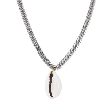 Le collier Shore de la marque MURA s’inspire des trésors marins pour offrir un bijou à la fois tendance et intemporel. Sa chaîne argentée à maillons serrés apporte une touche moderne et affirmée, contrastée avec la douceur naturelle de son pendentif.