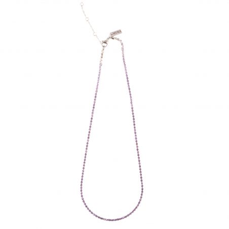 Le collier Mila de la marque MURA séduit par son éclat délicat et sa teinte mauve lumineuse, apportant une touche douce et sophistiquée à votre décolleté.