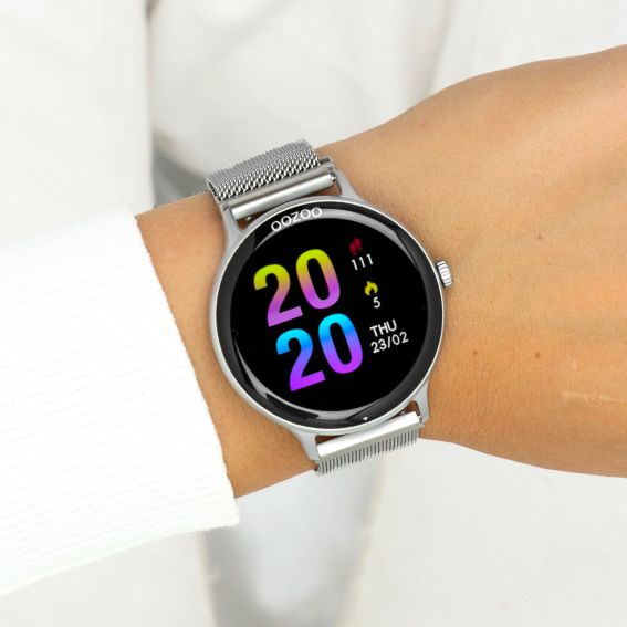 Cette montre de marque OOZOO est une montre connectée compatible Android et iPhone. L'entièreté du cadran est tactile. Celui-ci mesure 45mm de diamètre et 12mm d'épaisseur.