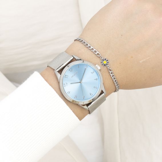 Affirmez votre style avec éclat grâce à ce superbe design rond pour femme issu de la collection tendance OOZOO Timepieces. Le modèle C11321 est orné d'un bracelet en maille métallique argentée et d'un boîtier de montre en métal argenté de 40 mm. Arborez avec assurance son cadran bleu clair soleillé, agrémenté de chiffres argentés et d'aiguilles assorties. Cette montre deviendra rapidement un indispensable de votre garde-robe, dotée d'un verre minéral et d'un boîtier en métal avec placage. Son dos en acier inoxydable garantit une sécurité sans faille contre le nickel. Animée par un mouvement japonais 2ATM, elle allie précision et fiabilité. De plus, bénéficiez d'une tranquillité d'esprit avec sa garantie de 2 ans.