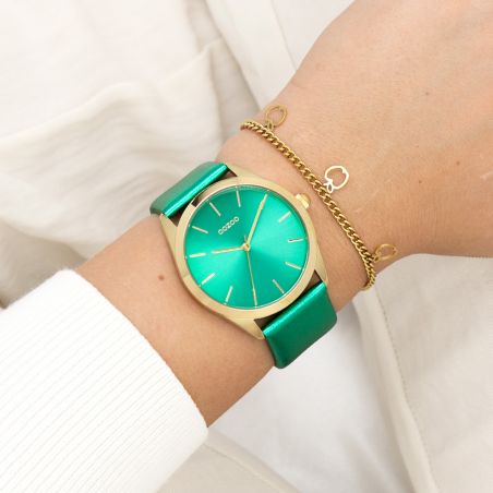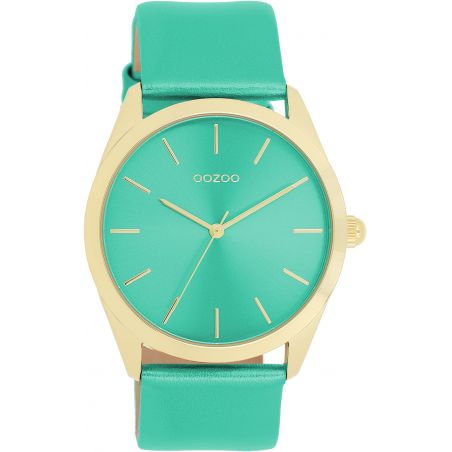 Faites sensation avec ce superbe modèle rond pour dames de la collection tendance de montres OOZOO Timepieces. Le modèle C11339 présente un bracelet en cuir vert aqua à l'aspect métallique et un boîtier de montre en métal couleur or de 40 mm. Affirmez votre style avec audace grâce à ce cadran soleil vert aqua, ses chiffres dorés à rayures et ses aiguilles assorties. Cette montre indispensable à votre garde-robe est équipée d'un verre minéral et d'un boîtier en métal avec placage IP, garantissant une résistance optimale. Son dos en acier inoxydable assure non seulement une protection contre le nickel, mais également un confort supérieur. Animée par un mouvement japonais 2ATM, elle offre une précision fiable et moderne à la fois. De plus, bénéficiez d'une garantie de 2 ans pour une tranquillité d'esprit totale.