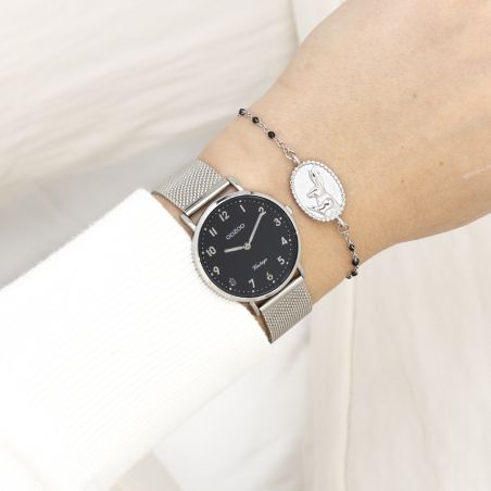 Cette montre de la marque Oozoo est une montre pour femme avec un bracelet en métal.