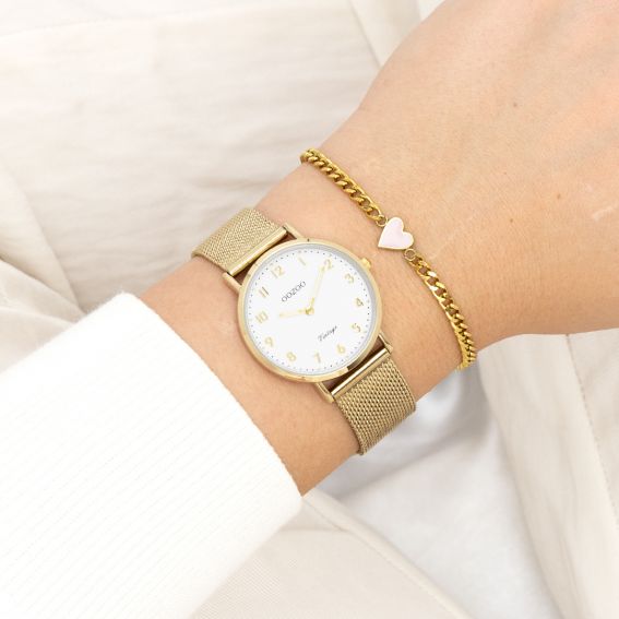 Plongez dans le luxe et l'élégance avec notre dernière création de chez OOZOO ! Symbole d'un style intemporel, cette montre pour dames incarne à merveille la fusion parfaite entre la mode et le confort. Avec son boîtier en métal couleur or de 32 mm et son cadran blanc éclatant, elle est l'accessoire idéal pour compléter n'importe quelle tenue avec une touche de raffinement. Son bracelet en maille métallique couleur or ajoute une note de sophistication, faisant de cette montre un incontournable pour celles qui recherchent un accessoire élégant au quotidien. Les détails dorés du cadran, ainsi que la référence C20347, apportent une touche de brillance à votre style, vous assurant un éclat irrésistible à chaque instant. Avec son verre minéral résistant et son mouvement japonais de haute qualité, cette montre est bien plus qu'un simple accessoire : c'est un véritable symbole de sophistication et de fiabilité. Ne laissez pas passer cette opportunité de vous démarquer avec style. Optez pour l'excellence avec notre montre OOZOO et faites briller votre style où que vous alliez !
