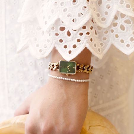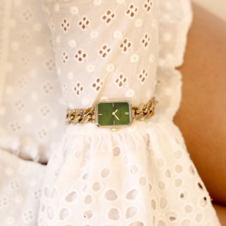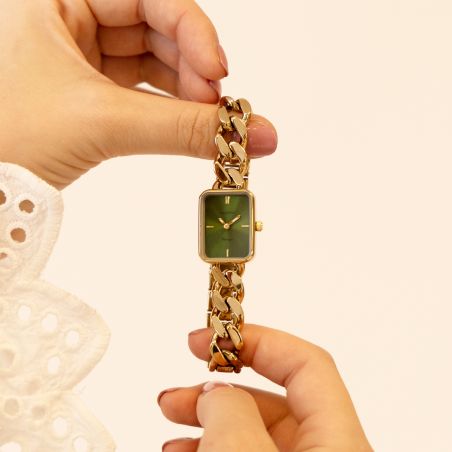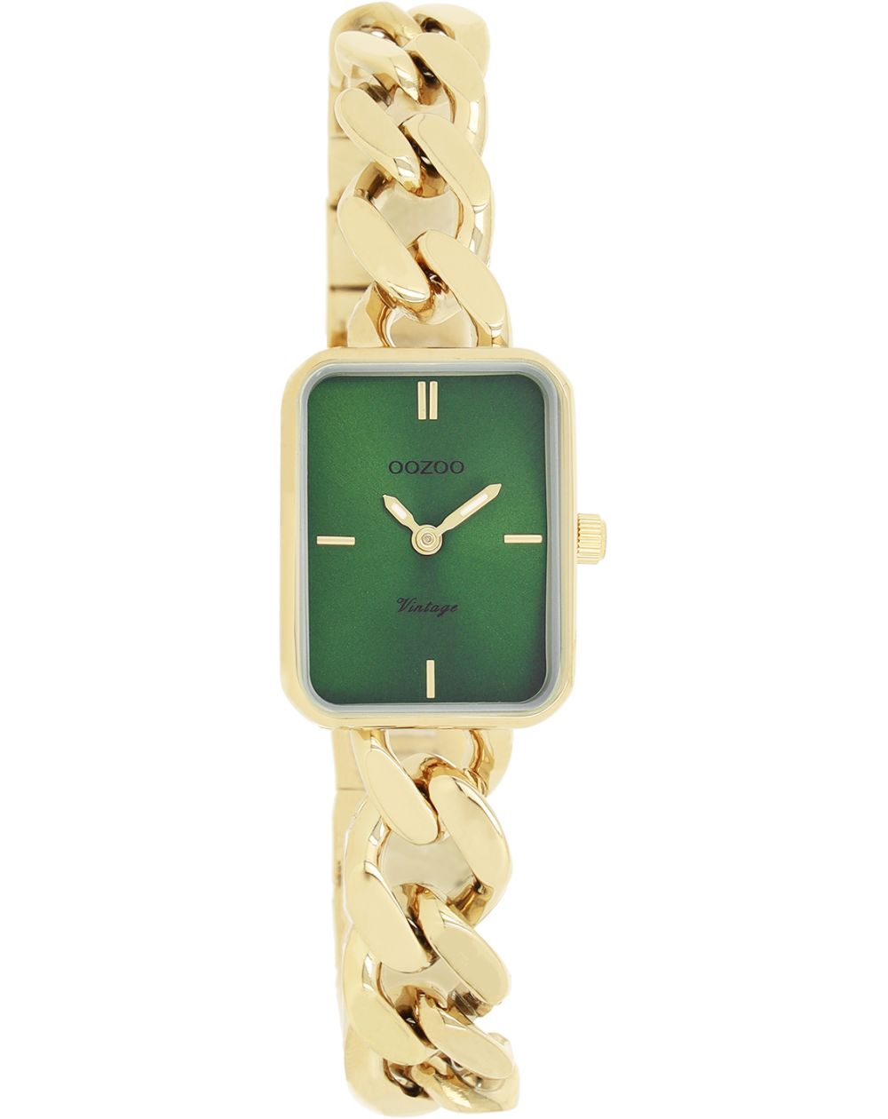 Le style classique reste essentiel dans cette série tendance, c'est pourquoi cette montre rectangle vintage de chez OOZOO, avec une touche ludique, est un incontournable de la saison ! Parfait mélange de mode et de confort, cette montre pour dames associe un boîtier en métal doré de 20x26 mm à un cadran vert. Son bracelet en chaîne dorée ajoute une touche de tendance, idéale pour une utilisation quotidienne. Avec ses détails doré et sa référence C20363, elle apporte une touche d'éclat à votre tenue. Cette montre, équipée d'un mouvement japonais de qualité, est bien plus qu'un simple accessoire : c'est un symbole d'élégance et de style.