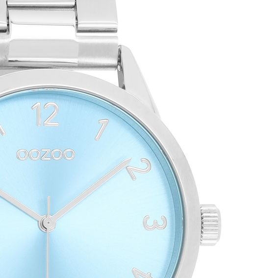 Affirmez votre style avec la montre unisexe OOZOO C11423. Ce modèle élégant présente un bracelet en acier inoxydable argenté et un boîtier en métal argenté de 40 mm. Son cadran bleu clair effet sunray, ses index argentés chiffrés et ses aiguilles assorties en font un accessoire chic. Mécanisme japonais 2ATM, garantie 2 ans.