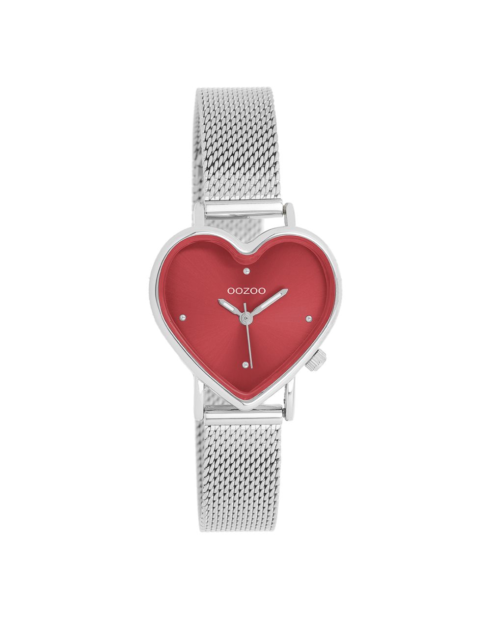 Exprimez votre style avec cette montre féminine au design en forme de cœur, une pièce phare de la collection OOZOO Timepieces. Le modèle C11444 se distingue par son bracelet en maille métallique argentée et son boîtier assorti de 28x29 mm, créant une allure intemporelle et sophistiquée. Le cadran rouge éclatant à effet soleil, orné d'index en points argentés et d'aiguilles assorties, confère une touche audacieuse et raffinée.