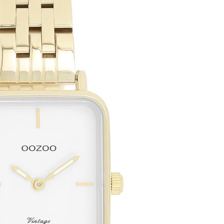 Brillante et minimaliste, la montre C20418 de la collection OOZOO Vintage séduit par son esthétique raffinée et intemporelle. Son boîtier rectangulaire doré de 24 x 28 mm associé à un cadran blanc épuré en fait un accessoire aussi élégant que polyvalent, parfait pour toutes les occasions.