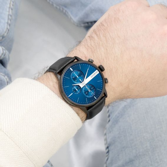 OOZOO Timepieces C11510 – Montre homme cuir noir au cadran bleu éclatant