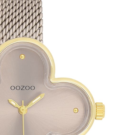 Succombez à la délicatesse de la OOZOO Timepieces C11528, une montre femme à la silhouette trèfle (32 x 32 mm), qui marie subtilement modernité et élégance intemporelle. Son bracelet en maille mesh taupe mat, associé à un boîtier en métal doré, crée un contraste chic et chaleureux, idéal pour un style raffiné au quotidien.