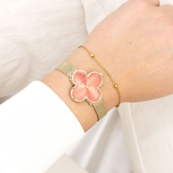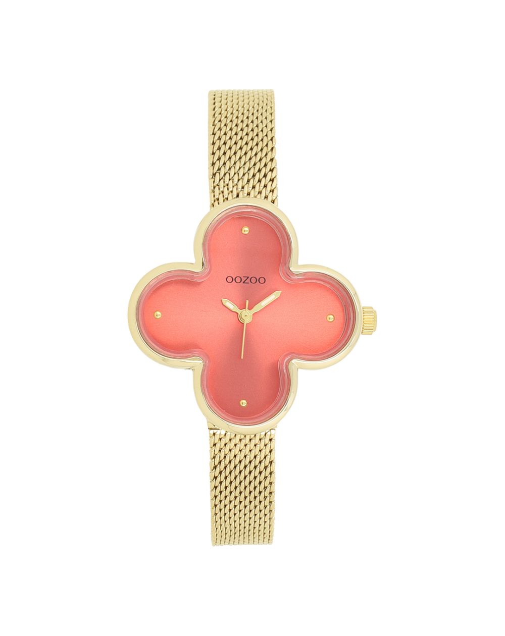 Osez la couleur avec élégance grâce à la montre femme OOZOO Timepieces C11529, un modèle rayonnant au format trèfle (32 x 32 mm) qui allie féminité et originalité. Son bracelet en maille mesh dorée et son boîtier en métal or brillant habillent le poignet avec éclat, tandis que son cadran camélia rouge effet sunray apporte une touche de caractère et de sensualité.