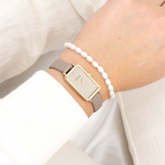 OOZOO Timepieces C11531 – Montre femme rectangle dorée & cuir taupe, douceur intemporelle et raffinement discret