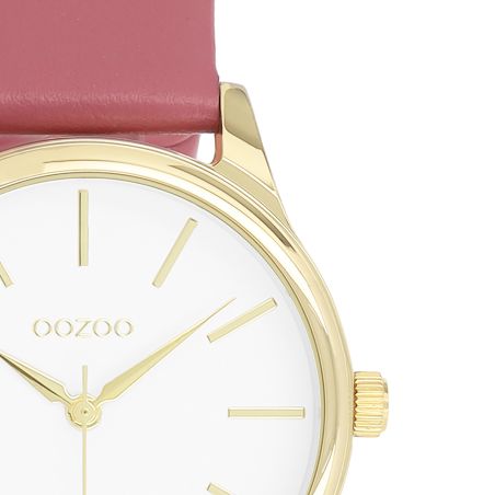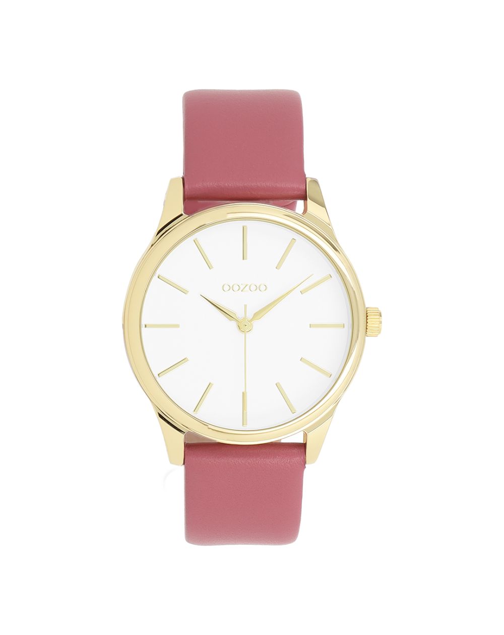 Son cadran blanc minimaliste met en valeur des index et aiguilles dorés, créant un contraste subtil et élégant. L’ensemble offre une lecture claire et une esthétique douce, parfaite pour sublimer le poignet sans surcharge.
