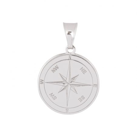 Ce pendentif est un pendentif en argent 925 en forme médaille gravée d'une rose des vents.