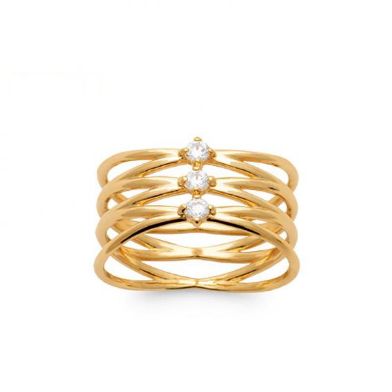 Bague solitaire triple entrecroisé plaqué or 18k zirconium