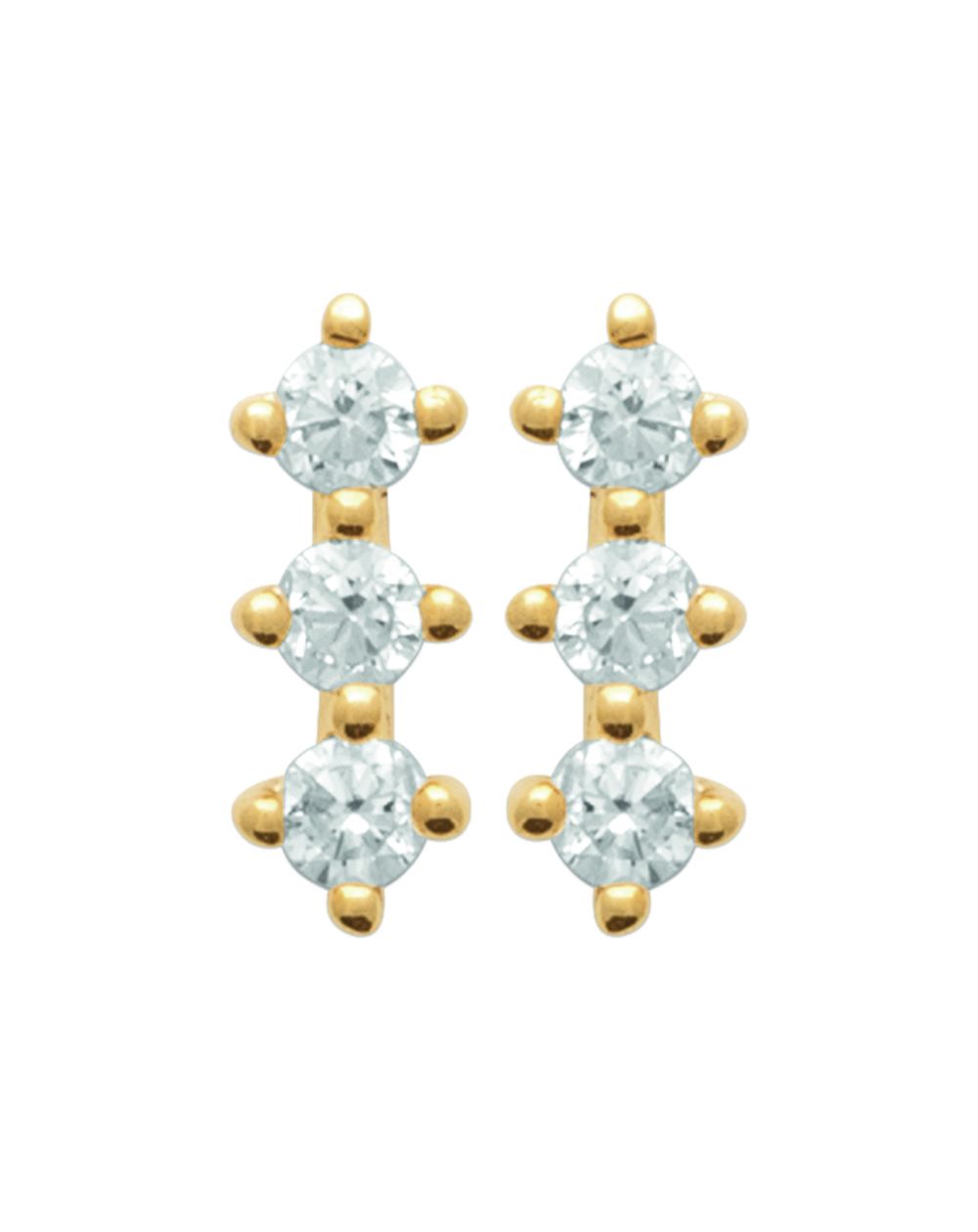 Ces boucles d'oreilles plaquées or 18 carats sont des perceuses composées de 3 oxydes de zirconiums.