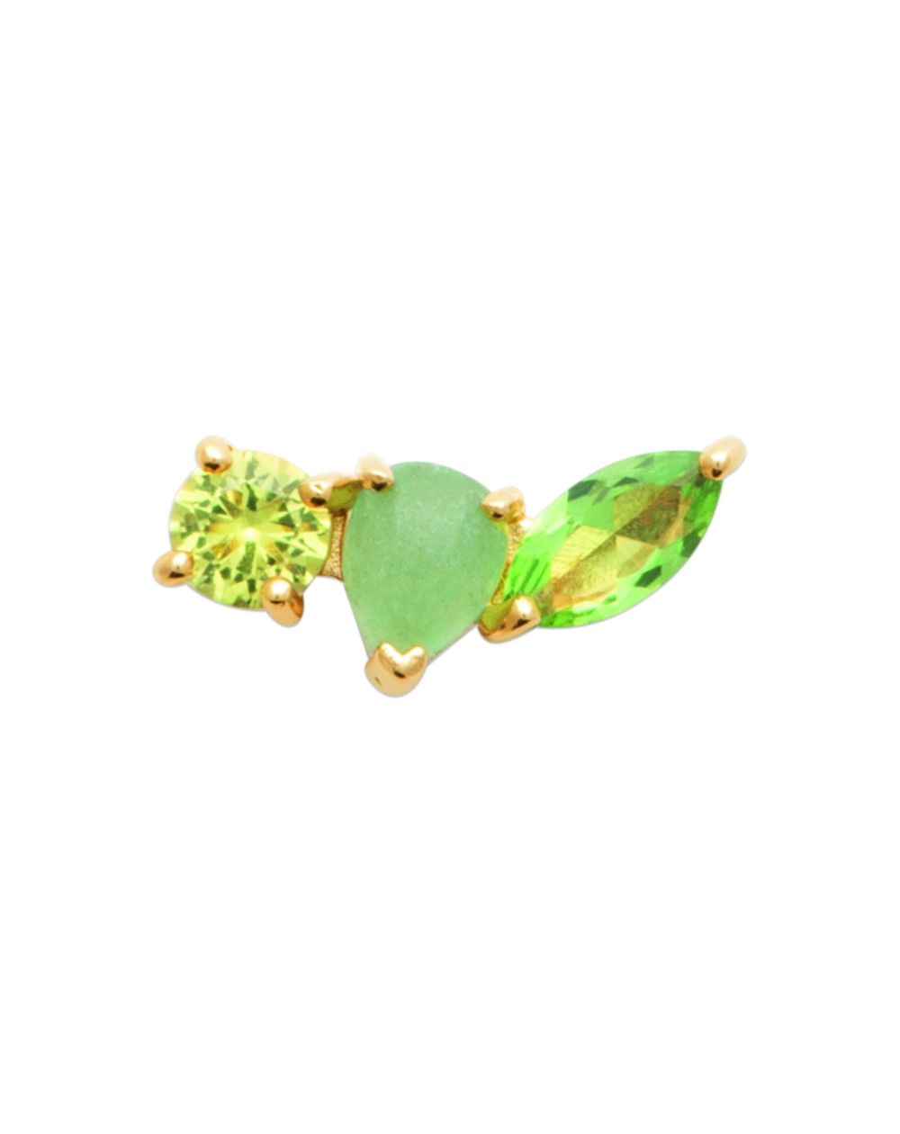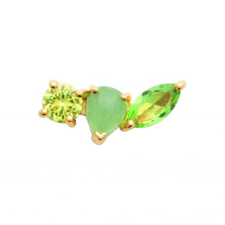 Boucle d'oreille en plaqué or avec une aventurine verte en forme de cœur et des pierres latérales.