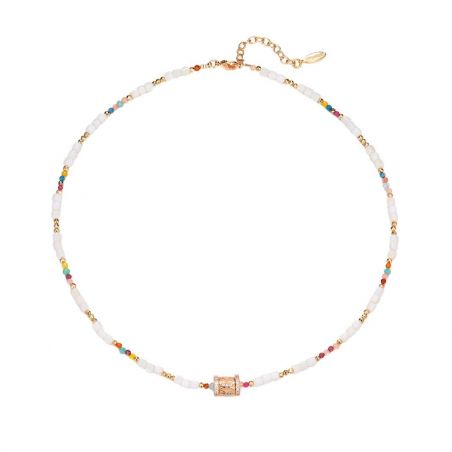 Une déclaration passionnée à l’océan, aux embruns et aux voyages lointains, ce thème vous transporte dans l’univers envoûtant et ensoleillé d’Hipanema, réinterprétant avec créativité les codes emblématiques de la marque. Laissez-vous séduire par cet adorable collier doré à l’or fin 14 carats, agrémenté de pierres semi-précieuses aux tons pastel. Orné d’une élégante pièce centrale dorée à l’or fin et sertie de zircons aux éclats cristallins, il habillera votre cou, seul ou en accumulation, évoquant les embruns marins et votre amour des rivages exotiques.