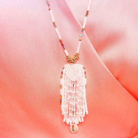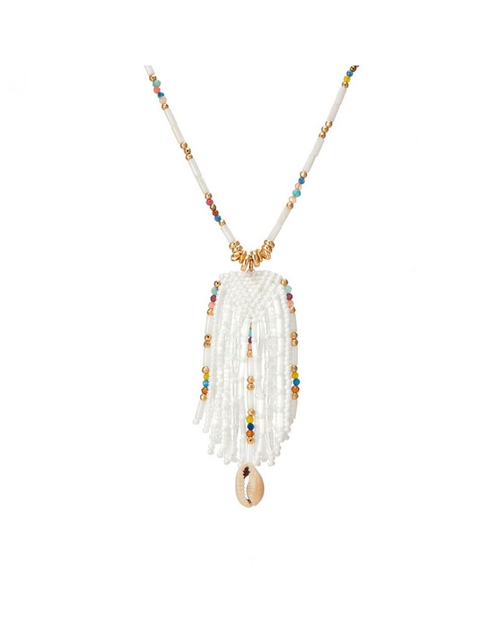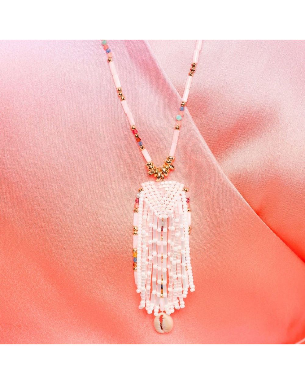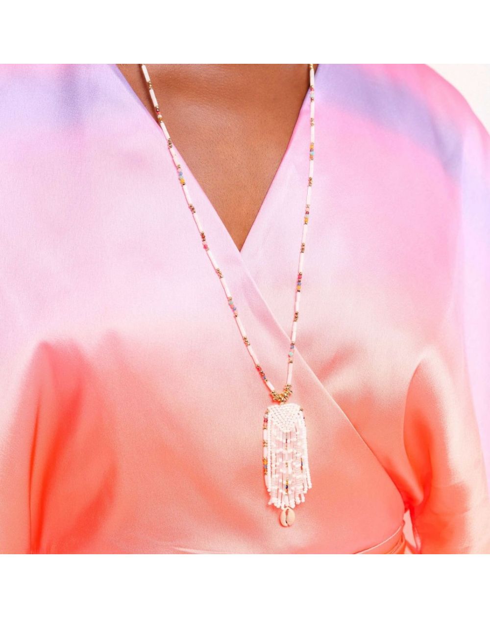 Un savoureux assemblage d'inspirations entre les voyages, la mer et l'influence bohème chère à Hipanema fait de ce superbe sautoir en or fin 14 carats une pièce indispensable à votre garde-robe estivale ! Sa longueur, d'une élégante décontraction aux nuances blanches, colorées et dorées, et son pendentif en perles de rocaille, délicatement tissées en forme de cascade, dessinent avec goût les contours d'un décolleté ou les lignes d'un maillot. Une invitation ultime au voyage et à l'exploration de rivages inconnus.