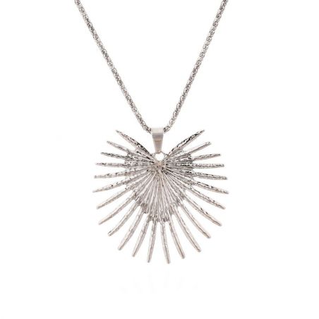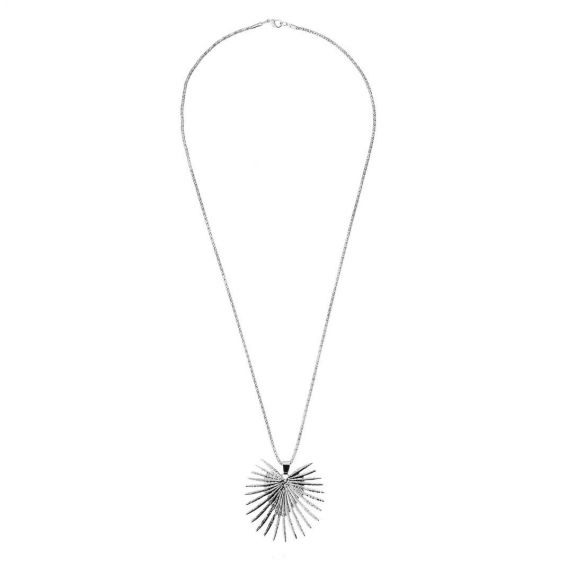 La collection Prestige se distingue par son audace, célébrant le volume, le faste et le luxe dans des créations uniques et inoubliables. Ce somptueux sautoir argenté incarne parfaitement cet esprit, avec son pendentif en forme d'étoile solaire, un motif rayonnant qui attire tous les regards. Une pièce iconique, pleine de panache et de raffinement, à porter fièrement pour affirmer votre style, en toute occasion.