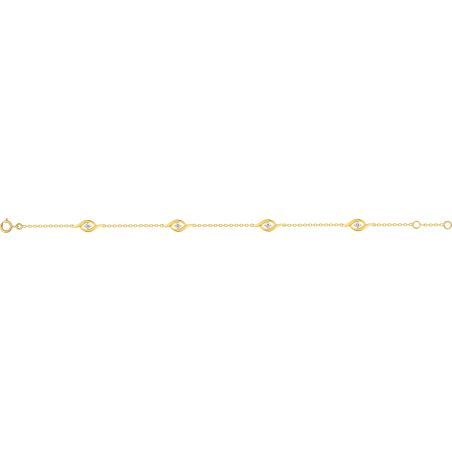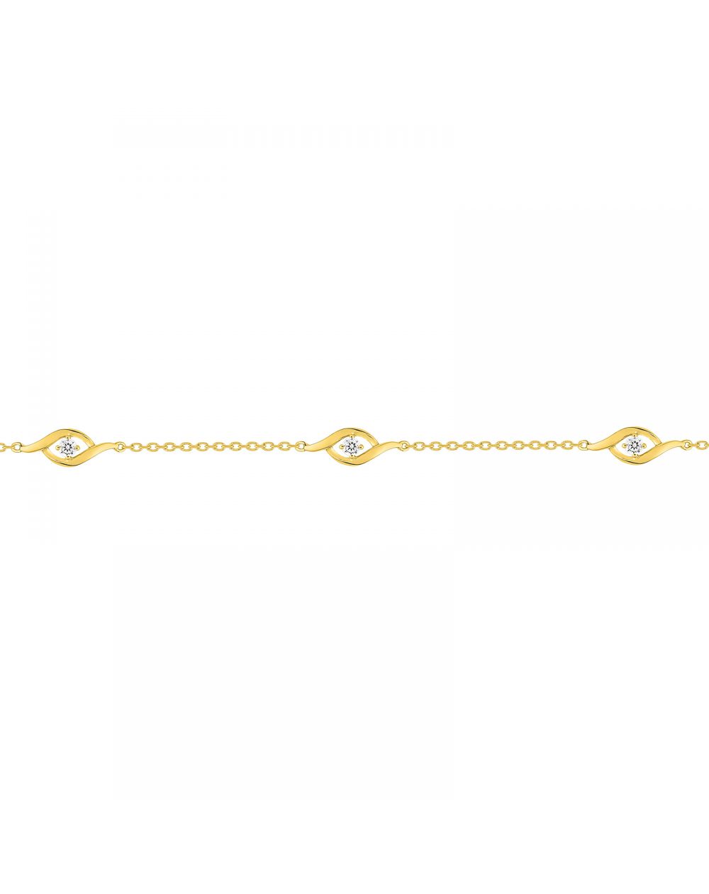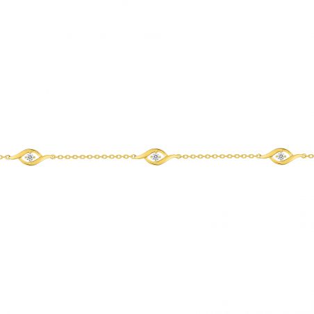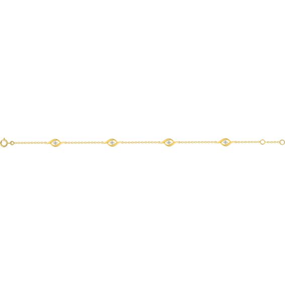 Deze 9-karaats gouden armband is een armband bestaande uit 4 zirkoniumoxidestenen die in fijne golven met elkaar verweven zijn . Deze armband is in lengte verstelbaar van 16,5 cm tot 18 cm.