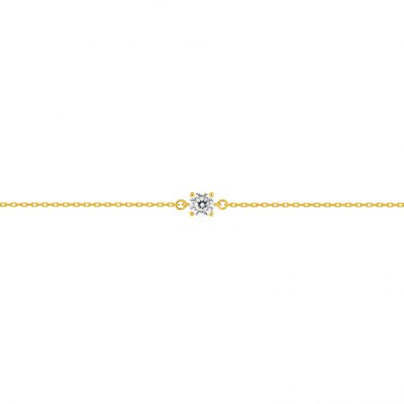 Deze 9 karaat gouden armband is een armband bezet met een zirkoniumoxide steen met een diameter van 4 mm . Deze armband is in lengte verstelbaar van 16,5 cm tot 18 cm.