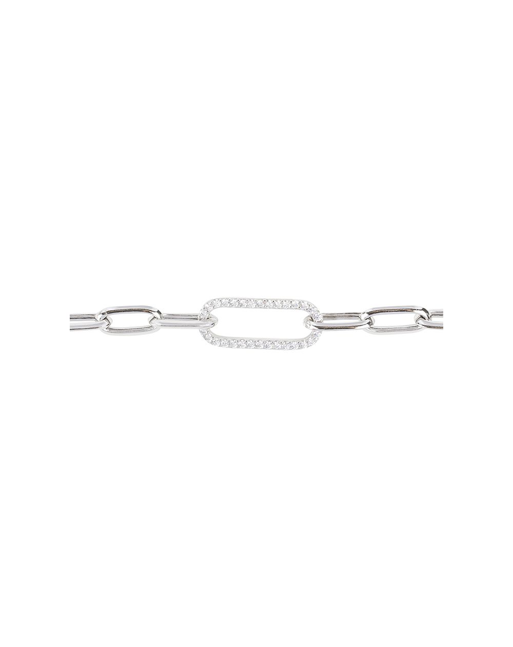 Deze damesarmband is een armband met schakels inclusief een grote dijk van zirkoniumoxide stenen.
