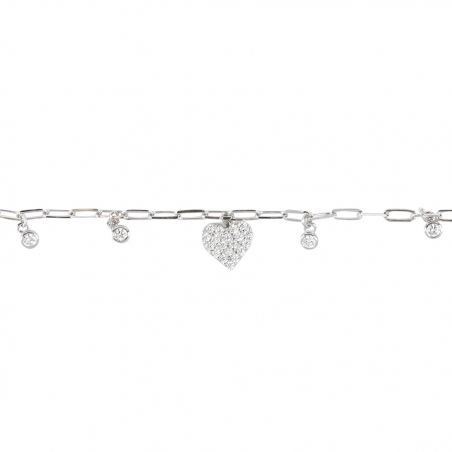 Deze damesarmband is een 925 zilveren armband met een groot stenen hart en 4 kleine zirkoniumoxide steentjes.