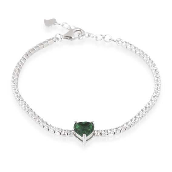 Deze damesarmband is een 925 zilveren armband met een groen zirkoniumoxide hart. Alle stenen zijn 20 mm lang en 6 mm breed.