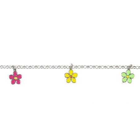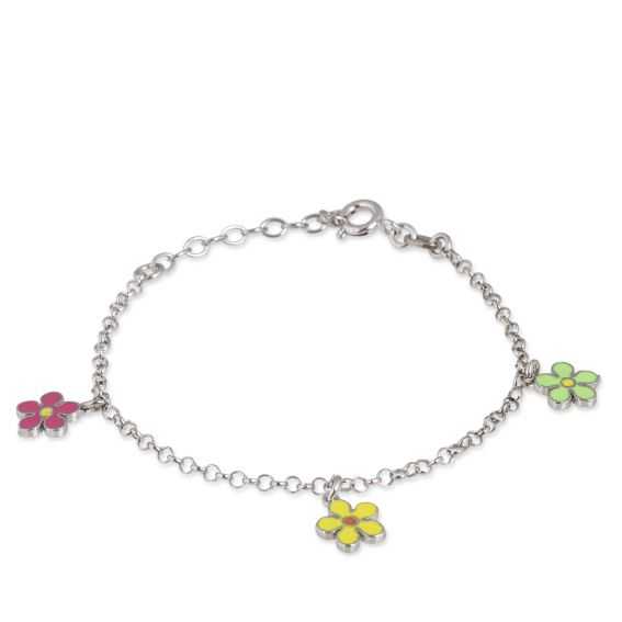 Deze kinderarmband is een 925 zilveren armband met 3 geëmailleerde bloemen. Deze armband is in lengte verstelbaar van 17,5 tot 14cm.