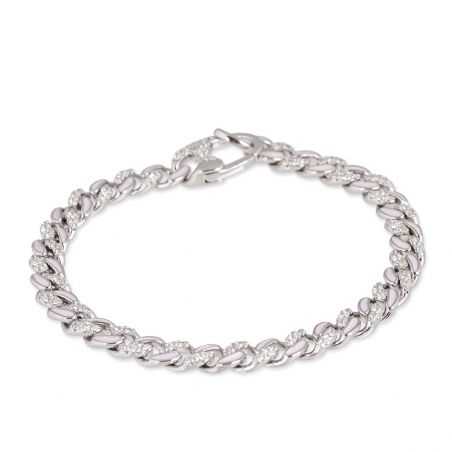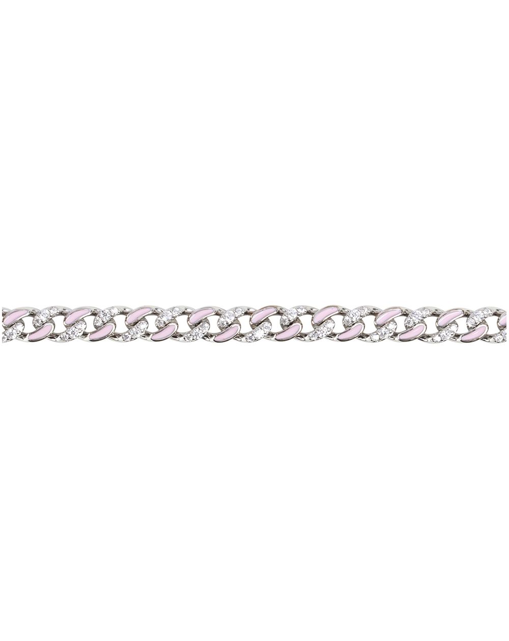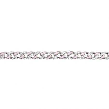 Deze armband van 925 zilver voor dames is een curb schakelarmband waarvan een deel roze is geëmailleerd of bezet met zirkoniumoxide steentjes. Het gaas is 6 mm breed.