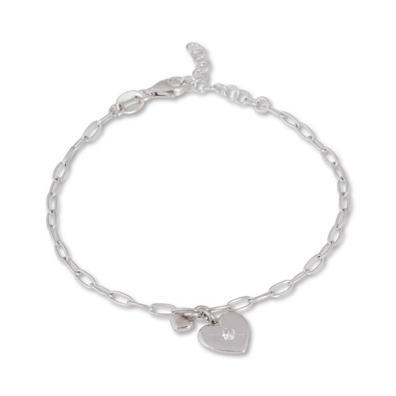 Deze 925 zilveren armband voor dames is een armband met 2 hartjes waarvan de grootste bezet is met een steen in het midden. Deze armband is in lengte verstelbaar van 20cm tot 17cm.