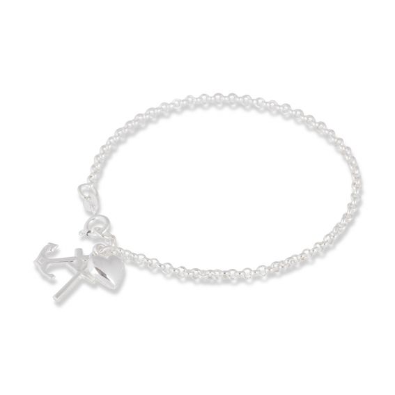 Deze armband is een armband bestaande uit 3 kleine hangers: anker, hart en kruis.